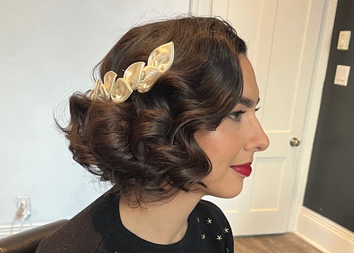 a larger hair accessory : choose one that makes a statement instead of a whisper. We love how this one trails the shape of the waves, emphasizing it all!